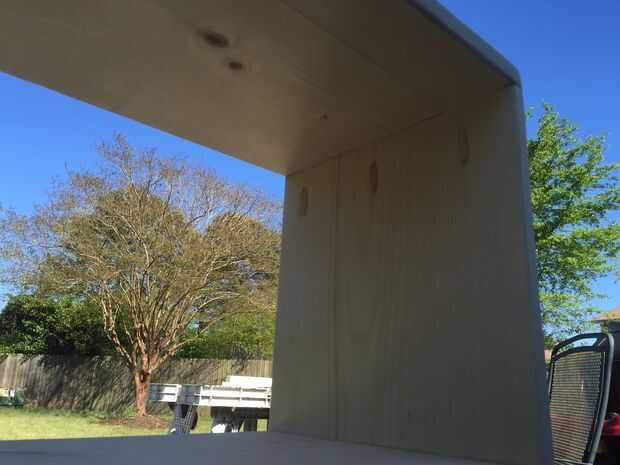 En este punto, habíamos decidido contra cualquier refuerzo adicional en la parte superior. Incluso sin los estantes centrales, la caja era muy robusta y no padecen tormento. Esto cambió la altura de los estantes, por lo que el espacio restante se midió para la exactitud. Después de restar el espesor de la plataforma, los distanciadores largos fueron cortados a la mitad de la distancia restante y el estante final fue pegado y atornillado. Asegúrese de prestar atención a los estantes y asegurarse de que no están orgullosos de los lados en la parte trasera tendrá un momento difícil conseguir el material de refuerzo más tarde.