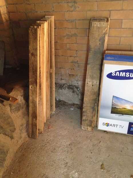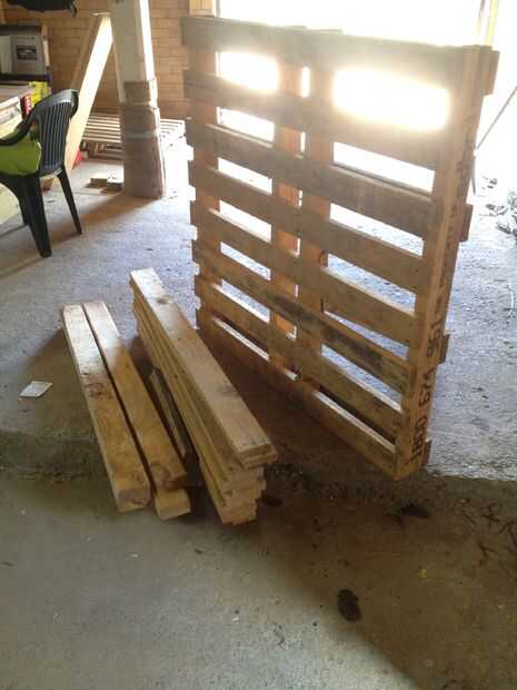 La primera foto muestra la madera y un pallet completo después del desmontaje.