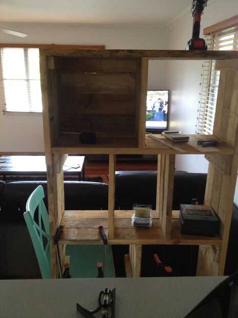 Logré la mirada que quería mediante la fijación de los listones de la misma orientación que la plataforma correspondiente. Así que si la plataforma era una sierpe uno, puse los listones van verticales. Estantes más pequeños fueron fijados horizontales. Rompe los estantes muy bien.