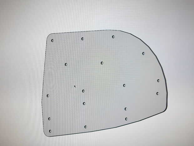 No me gustó el aspecto de los extremos desnudos de los estantes, así que diseñé tapas en Solidworks para ser hecha de aluminio de 0,090" de espesor. Pongo en un montón de tamaño #10 orificios"utilidad" en caso de que quería montar luces u otras cosas de la estantería más adelante.