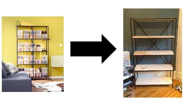por 60 $, cogí una estantería "Expedit" de Ikea, resultó para ser demasiado profundo para donde quería it...sooooooooBuena excusa para cortar cosas!Cortar el medio y herida para arriba con dos 8" profundo estantes que caben perfecto.Nota: l