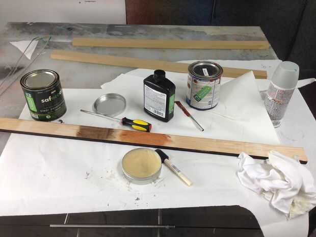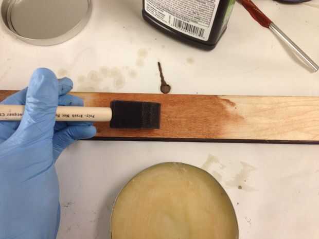 Pasé por un montón de acabados posibles tratando de encontrar a la derecha una de capas de uretano claro a cera de abejas. Colocó en un bálsamo de madera que era cera de las abejas parte, parte de aceite mineral. Tomó un poco de Sr. Miyagi-ción para todos se aplica la cera pero después de 30 minutos tenía todos los estantes de hecho. Luego volví con un paño seco y pulir a la cera ya aplicada.
