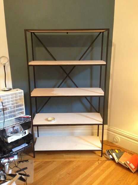 por 60 $, cogí una estantería "Expedit" de Ikea, resultó para ser demasiado profundo para donde quería it...sooooooooBuena excusa para cortar cosas!Cortar el medio y herida para arriba con dos 8" profundo estantes que caben perfecto.Nota: l