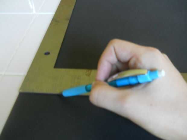 Próximo - Mida y marque el tablero de la espuma. Marca tu tablero de la espuma 1/16 de pulgada de su medida real. Esto es meneo espacio deslizar la placa en el lugar.