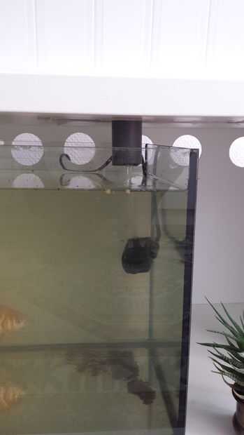 En cuanto a la bomba: Por lo tanto quería diagrama de consumo, eligió la bomba más pequeña posible - una bomba de 3W 200l/h con altura de 50cm la cabeza. Me imaginé 50cm sería suficiente para levantar el agua en la cama de crecimiento. También, para simplificar la plomería, corrí el tubo de agua de la bomba en la cama crece a través de la tubería de desagüe. Por lo tanto no tenía a ningún orificio adicional. Hasta ahora funciona muy bien. Te tenga que ver con el tiempo, si la bomba es lo suficientemente fuerte o si cualquier cloughing causada por desechos de pescado se produce. En este caso sería actualizar tho biger de la bomba y el tubo de diámetro.