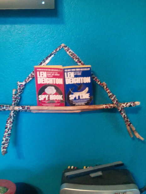 Cortar una longitud deseada de cinta y dobla por la mitad. Doble los lados pegajosos exceso. Ahora conducto cinta adhesiva en la parte superior. Voila! Biblioteca casera! Sólo tienes que atornillar en la pared. Asegúrese de que el tornillo a través de la correa.