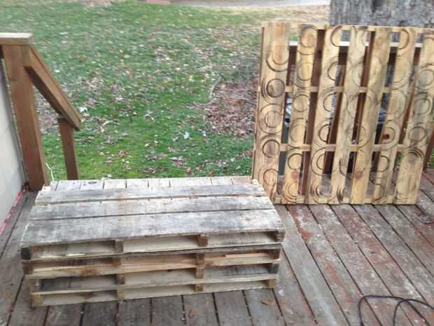 , Necesitará también cortar los palets por la mitad haciendo dos estantes de cada plataforma. Tuve que quitar una tabla de cada plataforma para conseguir mi rompecabezas para adaptarse a la zona a cortar. En esta imagen fue quitada la Junta de centro y la plataforma fue cortada. mis estanterías todo elaborado para ser 18 en profundo por unos 42 de ancho. Asegúrese de que utiliza plataformas que coinciden con y sus estantes fácilmente será del mismo tamaño cuando se cortan.