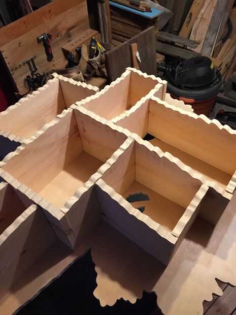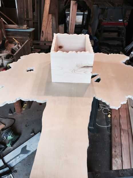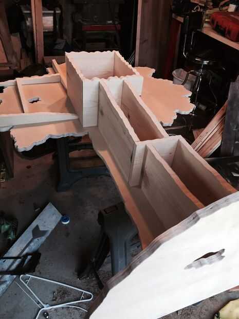 Cuando corté las tablas las curvas no se alinean por lo que hubo algunos bordes dentados. Entonces yo cortar el cuadro y luego contornear las piezas individualmente.