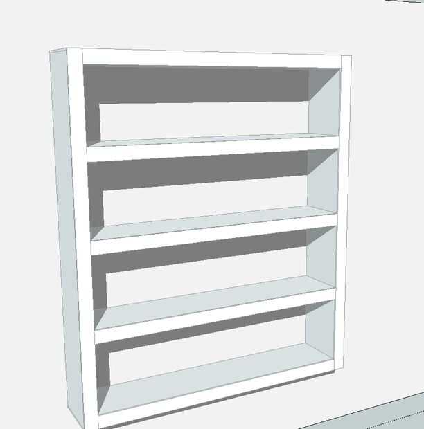 3. variar el número de estantes. Tomé 5, pero fácilmente podría hacer más o menos estantes. Necesita uno en la parte superior y otro en la parte inferior. Todos los estantes restantes se distribuyen uniformemente verticalmente.
