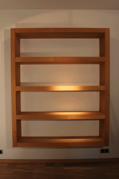 estos estantes son diseñados para montarse en la esquina de una habitación y colgar en las paredes adyacentes dos. Los estantes son trabajos de tipo medio, como son apoyados por cantidades mínimas de hardware oculto para dar la apariencia de ser rea