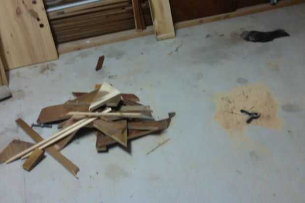 Una vez que han cortado, barrer el polvo de la sierra y tiran de cortes.