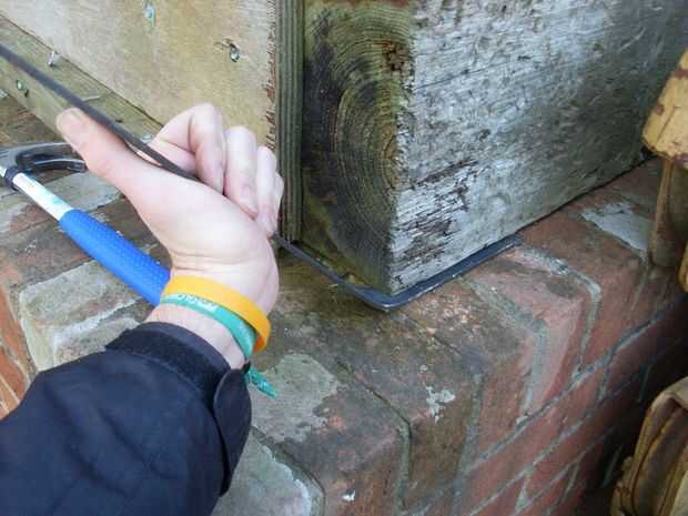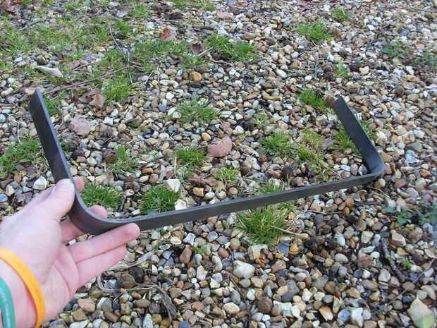 Entonces tuve que doblar el acero en ángulos de 90 grados en cada extremo de los soportes. Lo hice por acuñar el acero en un elemento inamovible y doblarla. Requiere algo de fuerza!