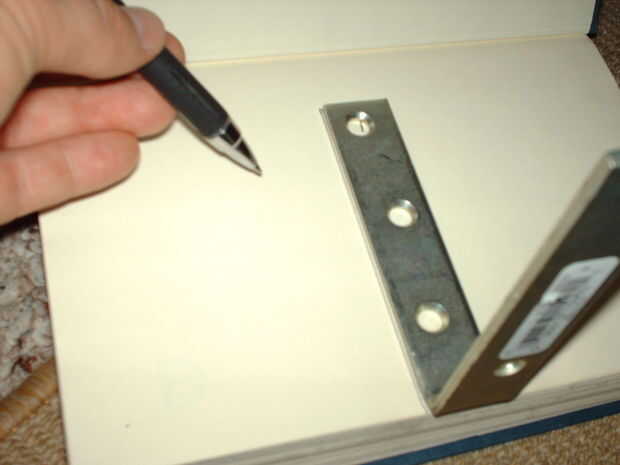 Medir el punto medio, haga una marca, establece su soporte, dibujar un contorno, mida nuevamente, corte un agujero lo suficientemente profundo que el soporte se pondrá al ras. Están haciendo esto a la parte posterior o inferior del libro, la parte que será visible en el producto acabado.