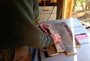 Me gusta secar colocar mis tablas y recoger los lados con el grano más bonito para el frente. Todos los tableros son corrieron a través de mi cepilladora para que sean del mismo grosor. El cepillo también le da una superficie limpia y fresca cuando se utiliza madera de palet.