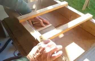 Ejecute los dos listones a través de la cepilladora de grueso para lograr una superficie limpia (puede también ser arena limpia). Ahora corte 2 piezas de 7 1/2 X 2 3/4 pulgadas de los listones de su plataforma. Estos serán el estante superior e inferior. Luego cortar dos piezas de 2 3/4 X 1 1/8 pulgada. Estos serán los lados de la plataforma.