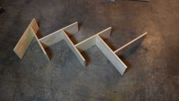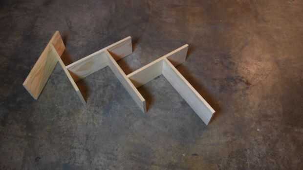 La plataforma evolucionará como la muestra de fotos arriba. La simetría va como sigue, cada pieza final se pega hacia fuera de 8" de la su plataforma ajorning. Esto garantiza por lo menos 8 pulgadas de espacio. Tenga cuidado y asegúrese de que la Junta a son cuadrada (totalmente perpendicular a la plataforma de unión). De lo contrario, terminarás con un estante de la onda.