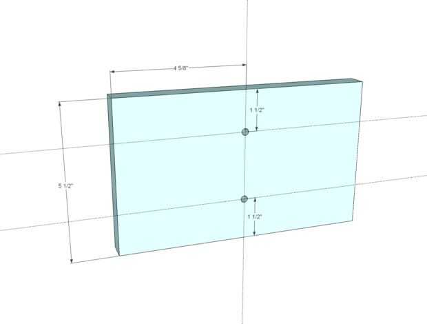 Para las piezas de la base del medio perforé las placas de 5 1/2" 1 1/2" de la parte superior e inferior centrado en 4 5/8"