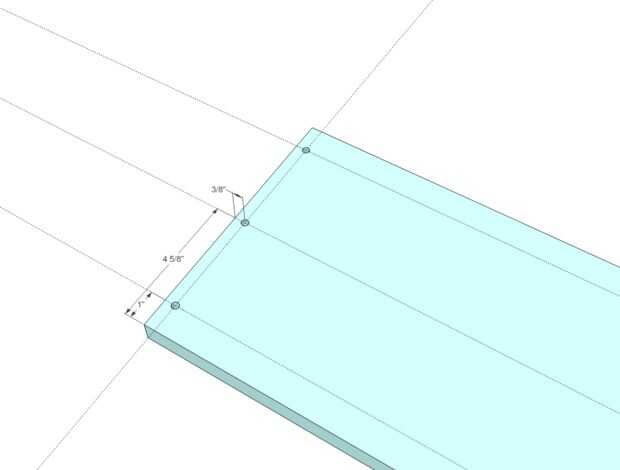 Para el 54" estante principales piezas se ser agujeros 3 a 3/8" en desde el borde, para que Centre sobre los tableros laterales.