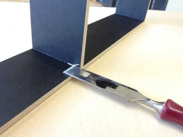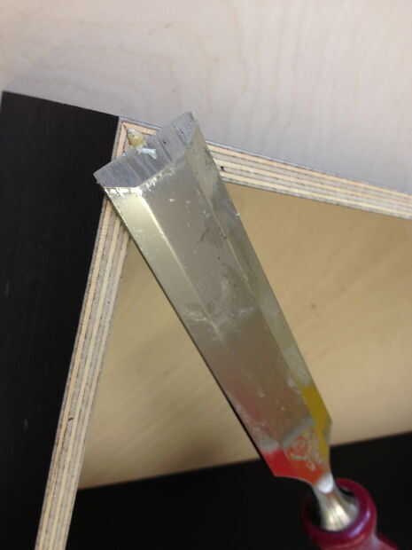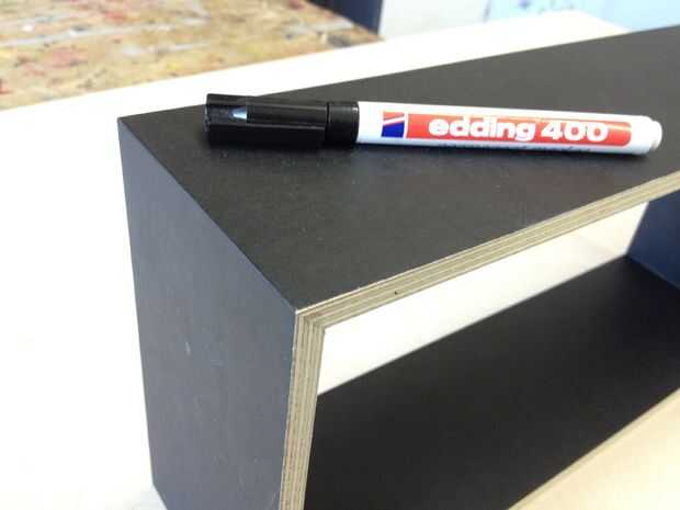 Achaflanar el ahora se unieron poco a poco y retocar con un marcador negro. Esto no deja ningún rastro en este material, pero tiene que ser probado con todos los otros materiales.