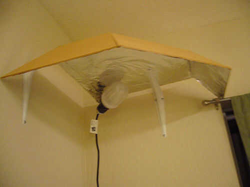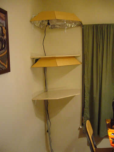 Una vez que haya terminado, usted puede poner el estaño en para las espaldas de los toldos. Se puede ver en la última foto, con todos los estantes, donde he añadido las tiras de papel de estaño a lo largo de la parte posterior para completar el dosel superior. Es a libre-que cuelga, viró para arriba allí con unos toques de pegamento caliente. No necesita ser robusto, sólo debe reflejar la luz.
