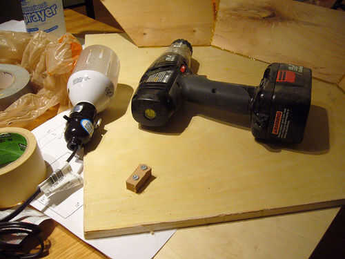Para el toldo en la parte inferior de la plataforma, asegúrese de que la pieza de madera es lo suficientemente lejos en desde la esquina que se ajuste a la parte posterior de la luz y el cable de alimentación. Para la cubierta superior, es menos importante, ya que la esquina de ese pedazo de madera contrachapada no llega a la esquina de la pared, así que usted puede poner el trozo de madera justo en la esquina.