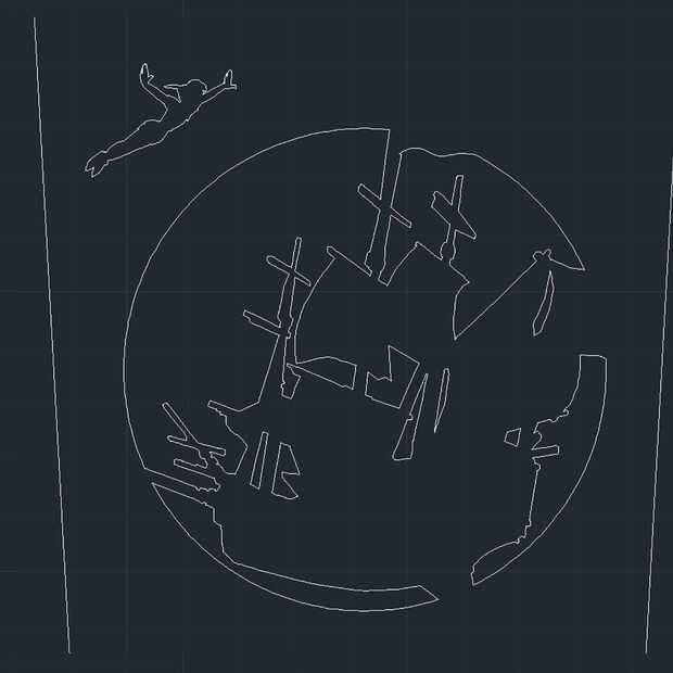 Puesto que este proyecto iba a ser un CNC de corte de la plantilla, necesitaba una silueta icónica. Empecé con un barco pirata impresionante, cortar el fondo y había ajustado los niveles en Photoshop, invierte la imagen para tener en cuenta que es una plantilla y Peter Pan se ha añadido! Guardar esta imagen como un archivo PNG totalmente librarme del fondo y convertido a un esquema de vectores. Photoshop, Illustrator y CorelDraw tienen esta característica. Finalmente he añadido este último toque en mi archivo de CAD.