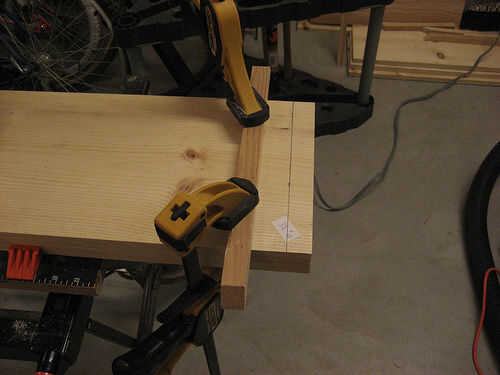 2.) Recuerde, que su madera es 3/4 pulgadas de espesor. Si está usando un top, pieza decorativa, corte los lados 1 1/2 pulgadas más cortas que desea que la plataforma esté. En otras palabras, si desea que la plataforma esté 30" de altura, cortar las piezas del lado para ser 28 1/2 pulgadas de alto.