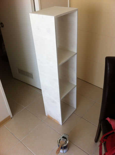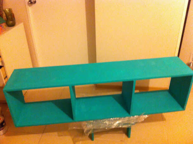 Desarma todo el gabinete (que había hecho yo) y cortar las repisas.