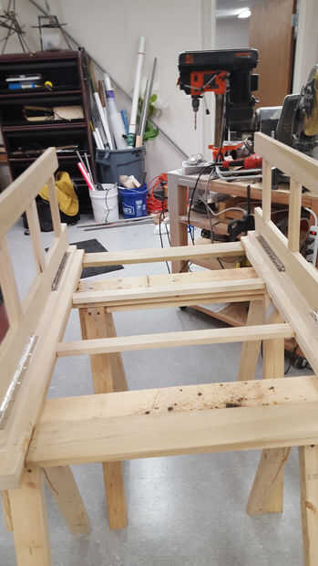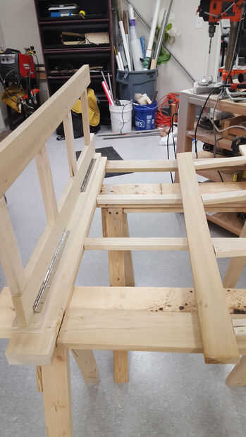 Los lados deben quedar al ras con la parte superior de la espalda y la parte extra del 1 x 2 debería ser en la parte inferior exterior apoyar cuando la librería está abierta. (1 x 4 se corta más corto para permitir más fácil balanceo de los lados).