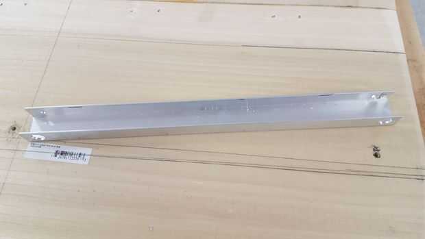 Coloque cuatro de los canales de metal en el estante superior 6 1/2" desde el borde externo con el lado para el destornillador hacia fuera.