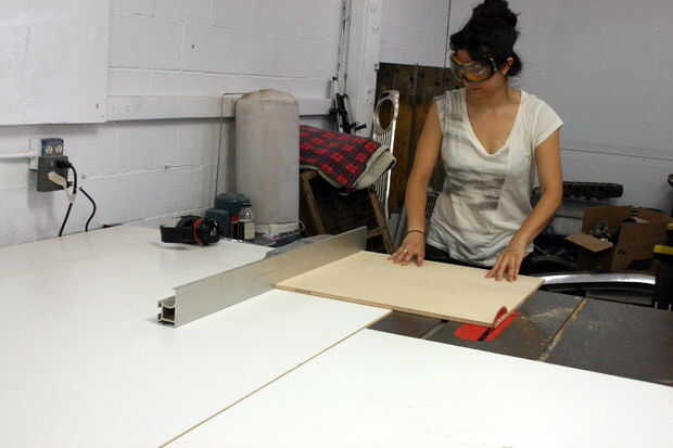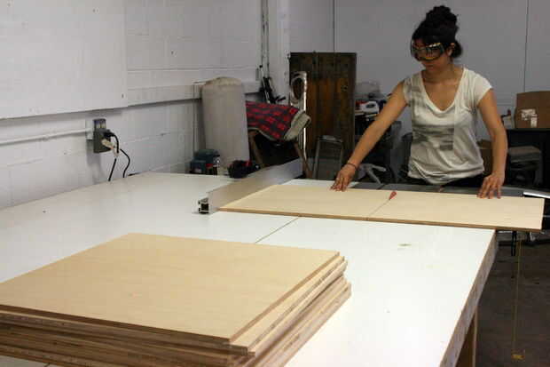 Hacer exacto 23 3/4" plazas, asegurándose de cortar cada borde para que ninguno de los cortes originales (no podemos confiar en los cortes en madera contrachapada stock) permanecen.