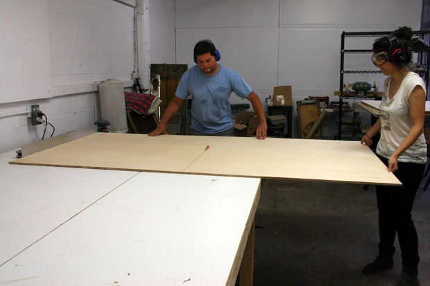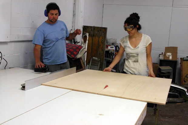 Áspero, cortar el 4'x 8' de madera contrachapada de 1/2" a la mitad para hacer 4' plazas.