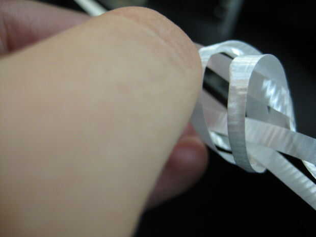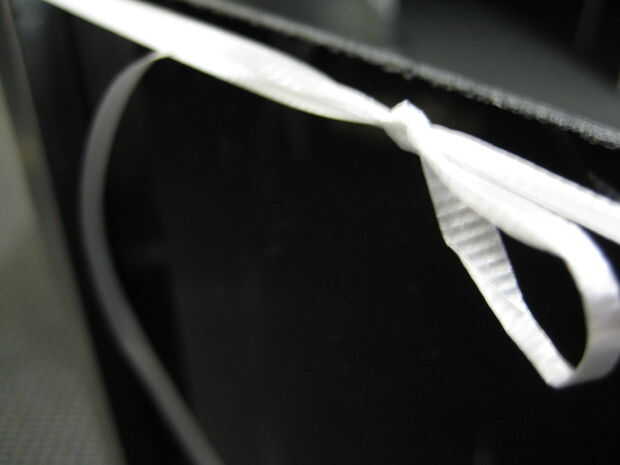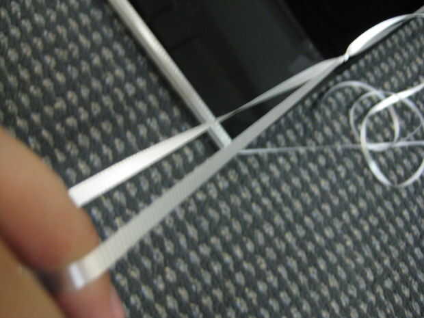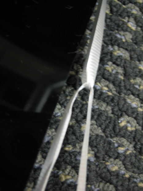 En un extremo ata un lazo. Até mina utilizando una figura 8 nudo. Cortó la cinta de la bobina dejando unas pulgadas extras vale la pena. Pasar estas pulgadas a través del lazo y tire hacia atrás para crear una tensión alta.