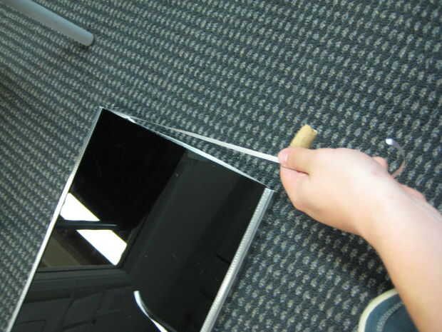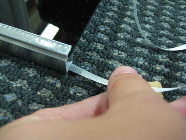 Tire de la cinta a través del centro de una sola pieza de aluminio extruido y vuelta a través del centro de la otra.