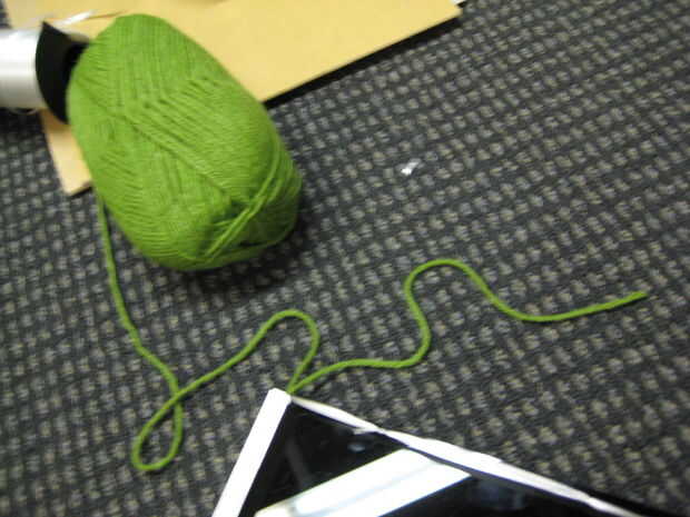 El hilo debe ahora ser doblado (es decir, pasaron dos veces). Agarrar ambas secuencias en ambos extremos y tire de ellos hasta que tenga la misma cantidad de hilo aproximadamente de seis a diez pies largo en cada lado.