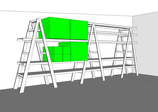Idea es construir estantes baratos que si necesita más espacio que podría fácilmente desmontarlas.