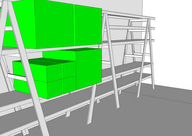 Necesitaba una solución para mantener todos los bolsas que almacenan decoraciones de la Navidad. Esta estantería móvil hace el trabajo, es fácil de construir y cuesta menos de 60 dólares en materiales. Fácilmente puedo moverse en mi trastero del sóta