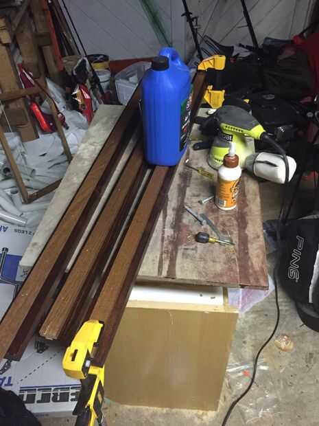 Después de que el pegamento seca su tiempo para hacerlo de nuevo. encolado y fijación. Había manchado el cedro 1 x 3 y lo un poco lamento ahora desde cedro se ve tan bien por cuenta propia.