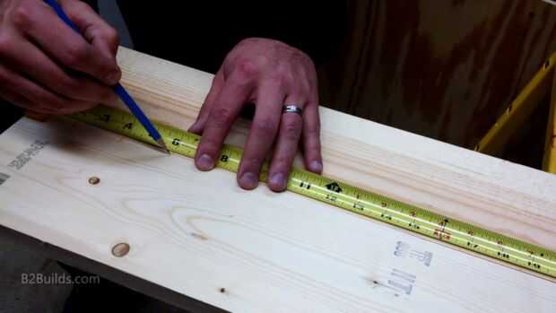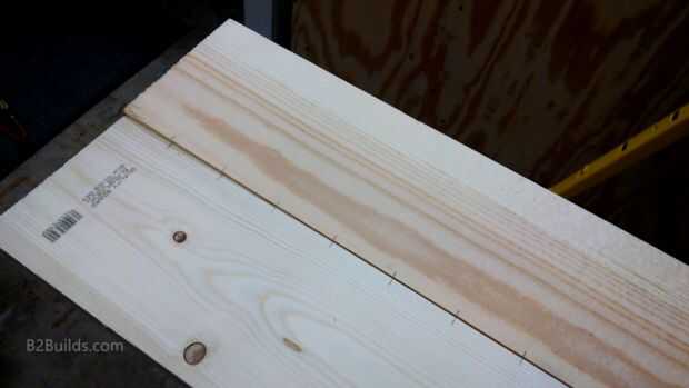 Cortar ranuras cada 2 pulgadas, colocar dos tableros al lado del otro, y realiza una marca cada 2 pulgadas a través de ambas placas.