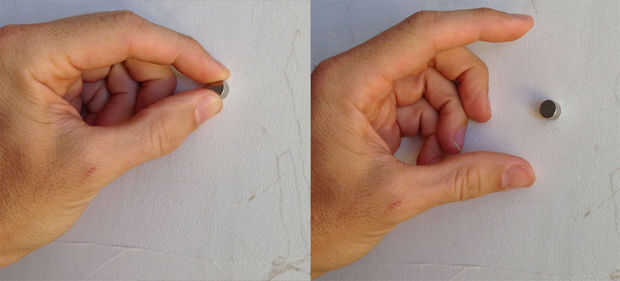 Mi detector de montantes favorito es un imán de tierra rara. Me deslizo sobre la pared hasta que se pega. Encuentra los tornillos que sujetan el panel de yeso a los postes. Para paredes de yeso, un imán no funcionará, y un studfinder electrónico puede o no trabajar.