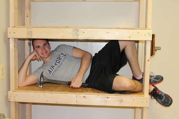 sierras de energía utiliza este Instructable. Ojos y oídos son importantes. Mantener partes del cuerpo lejos de Sierra de las cuchillas es muy importante.Mi hijo me pidió que le ayudara a crear algunos estantes para su garaje que incorporaría el espa