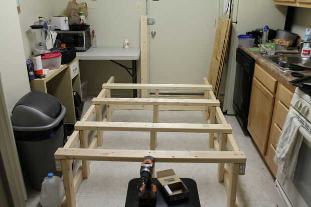 Asegúrese de que todo es cuadrado, entonces comienzo atornillar todo junto (después de pretaladrar los agujeros) con 2 tornillos por Junta para evitar la rotación.