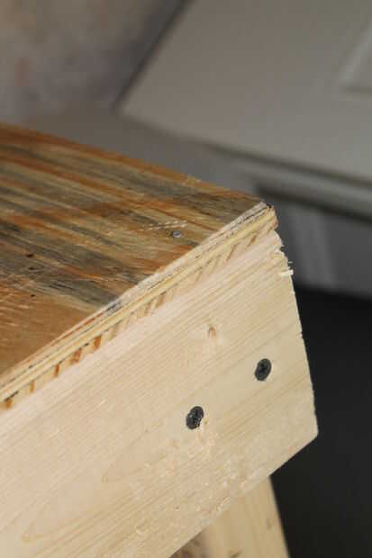 Recuerde: la pieza superior de la madera contrachapada es la pieza más grande porque se cuelga demasiado los pernos de soporte.