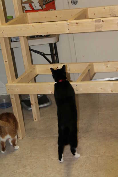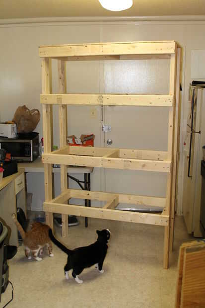 Porque esta cosa era tan alta, hizo el estante superior mientras se establecen, luego voltea hacia arriba para unir los pedazos restantes de madera contrachapada.