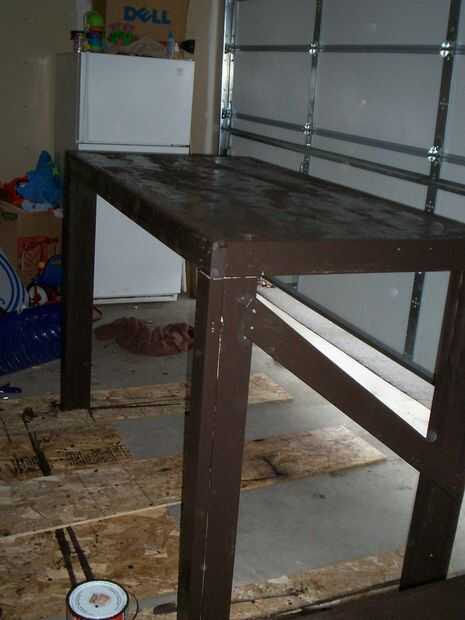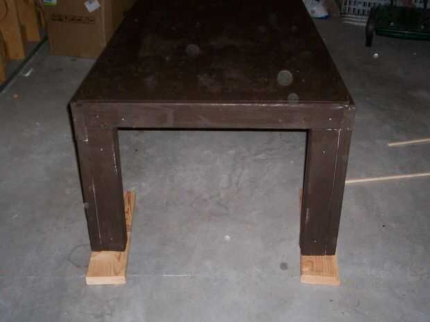 Es más fácil la pintura/de la mancha las tres unidades mientras están todavía separados. Son fáciles de mover y puede ser encendidos a su lado en la parte inferior. Cualquiera menos manchas o golpes que demuestran para arriba después de montaje final puede ser tocado hasta entonces. Mueve las piezas al aire libre y prenderles piezas de desecho de OSB por lo que sería cualquier derrame en el piso de su garaje. Esto funcionó bien hasta que empezó a llover: ()