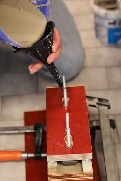 F Riet verter el hormigón en el molde sin los soportes. Cuando esté casi lleno se puede colocar los soportes y los pobres el resto con un embudo.