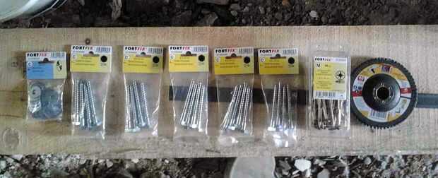 Opcional: Cortador de disco con disco de fibra grano 40 zirconia para limpiar las soldaduras y, como se verá más adelante, a la edad de la madera.