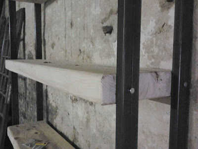 Ahora necesitará perforar agujeros en cada estante para que puede ser atornillado a la estructura de acero. Taladro 4 agujeros en cada estante, alineados con los agujeros perforados en el frameT acero