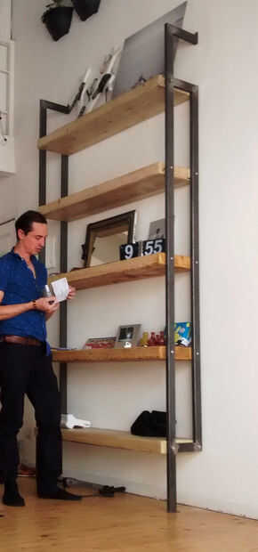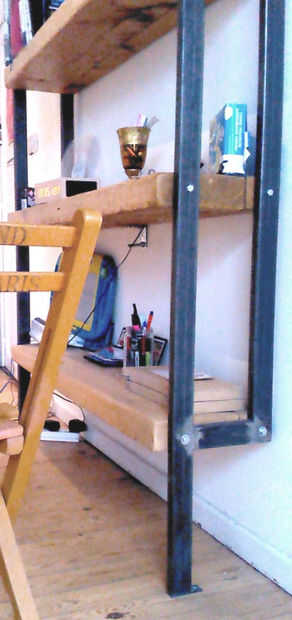 Una vez termine de barnizar, es necesario montar los estantes: el marco se acueste y atornille los estantes en su lugar. Son bastante pesados cuando termine. Luego de pie los estantes y atornille a la pared usando los soportes de pared.