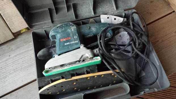 Utiliza algunos curso grano de vidrio papel (grano 60 u 80) y una lijadora eléctrica para tomar de la capa superior
